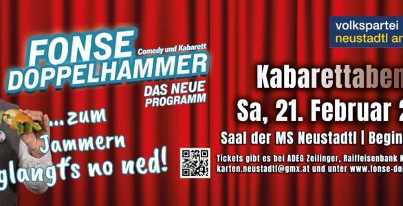 Karten ab sofort bei ADEG Zeilinger, Raiffeisenbank Neustadtl, karten.neustadtl@~@gmx.at und unter www.fonse-doppelhammer.de erhältlich!